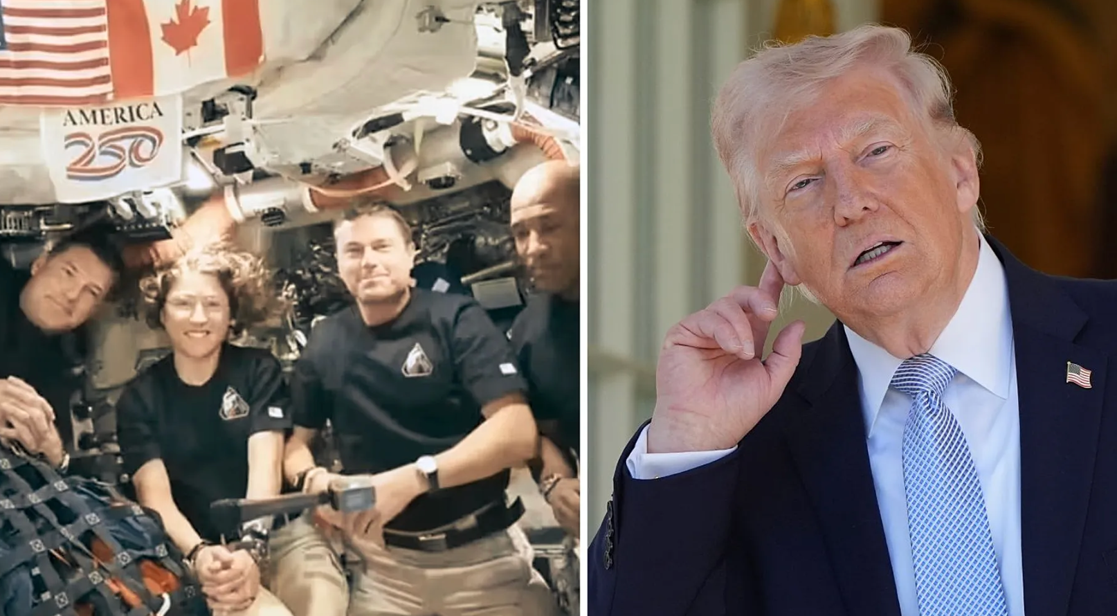 特朗普在通话中先是祝贺宇航员成功完成绕月飞行,但随后话题开始偏离,转而对加拿大宇航员汉森讲述自己曾与前加拿大冰球运动员、MAGA支持者韦恩·格雷茨基以及加拿大总理卡尼的对话:“嗯,我得说,我跟一位非常特别的人聊了聊,韦恩·格雷茨基,我想你们都知道他,人称‘冰球大帝’,我还跟你们的总理以及我在加拿大的许多其他朋友聊了聊。他们都为你感到非常骄傲。”