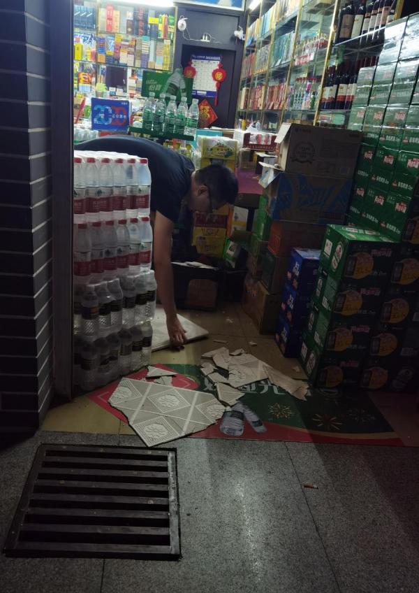 目击者称,附近有店铺的天花板部分装饰材料被震落。受访者供图